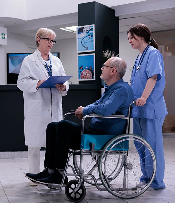 Support with hospital formalities, coordination, and patient preparation.